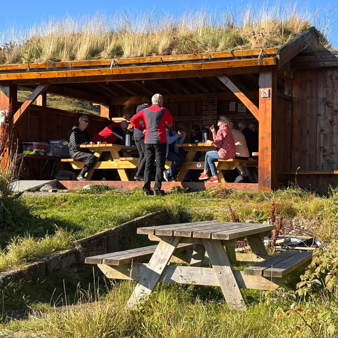 Det var eit strålande fint haustvêr i dag då vi møttest på sesongens siste naturmøteplass. Mange glade vandrarar stakk innom og fekk kaffi og nystekte vaflar. Vi startar opp att til våren..
