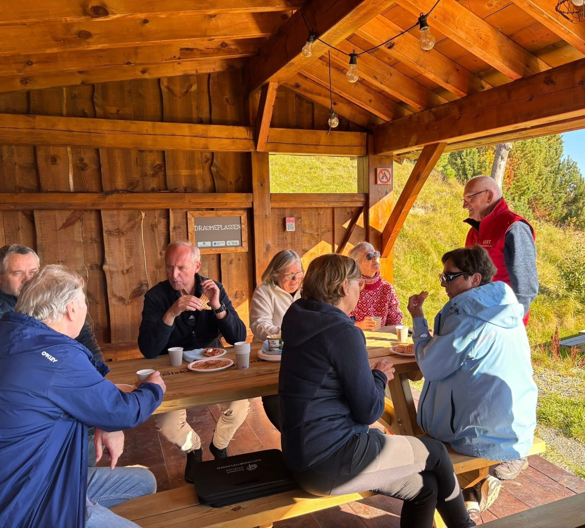 Det var eit strålande fint haustvêr i dag då vi møttest på sesongens siste naturmøteplass. Mange glade vandrarar stakk innom og fekk kaffi og nystekte vaflar. Vi startar opp att til våren.