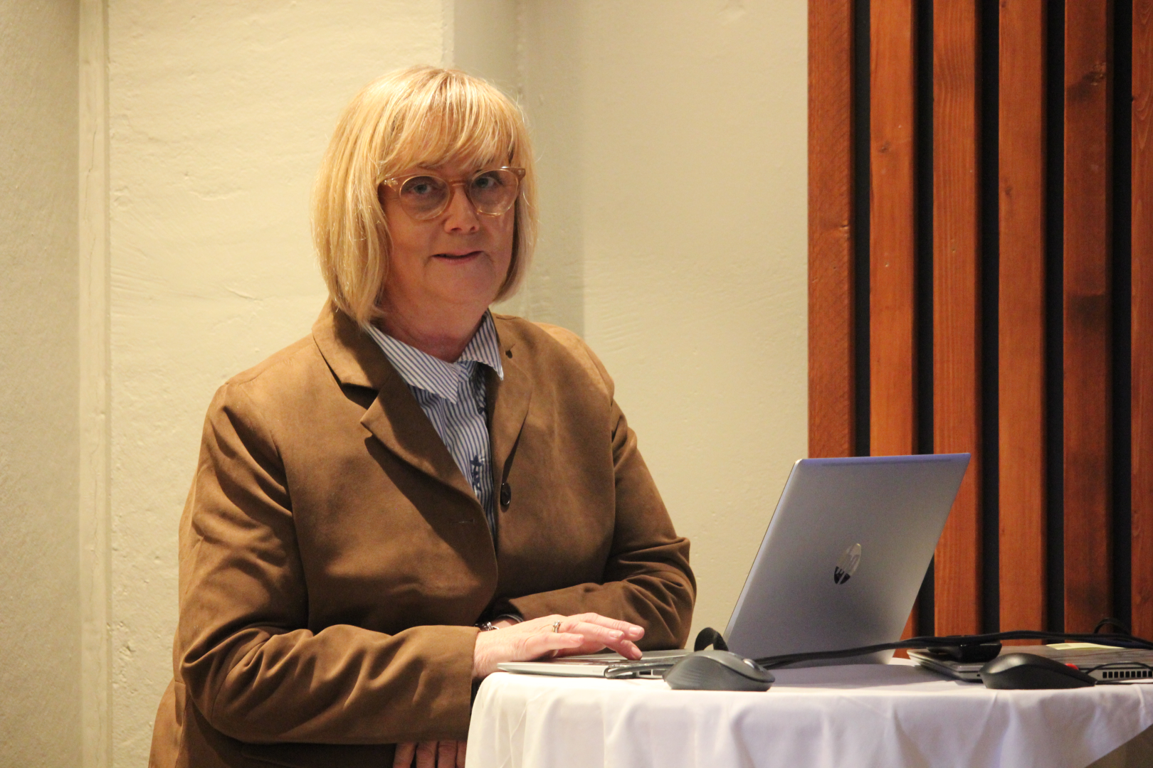 Turid Giskeødegård fortalde om sitt arbeid med å rektruttere og lære opp fosterforeldre, og oppmoda alle om å vurdere å bli fosterforeldre.